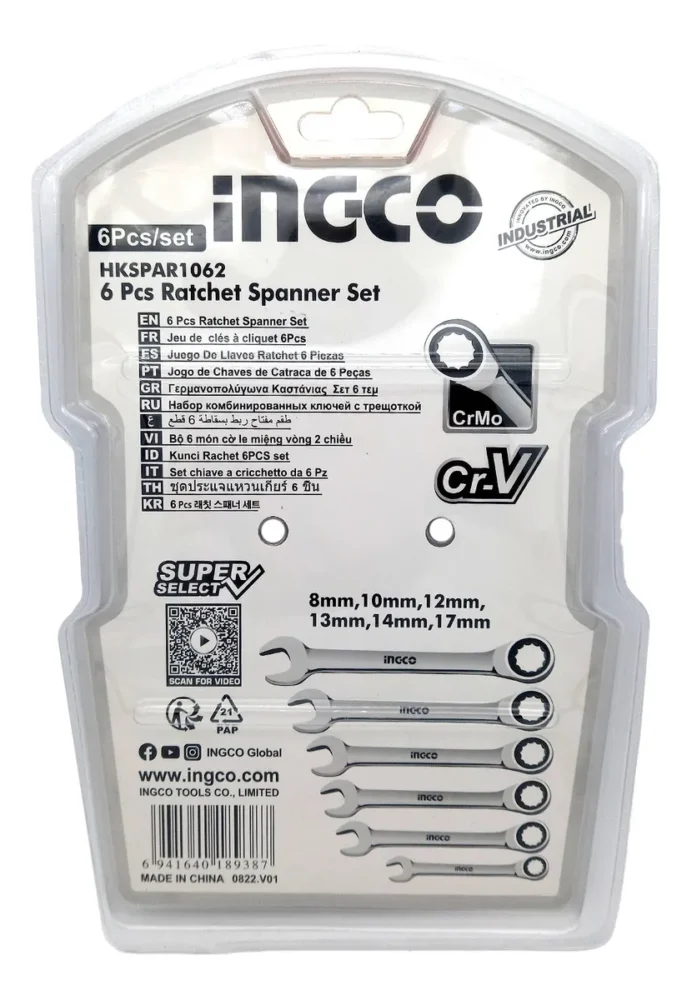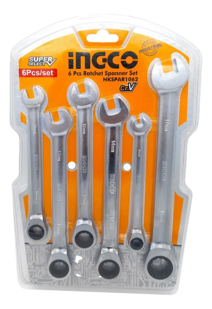 Juego De Llaves Combinadas Con Crique Ingco 6 Piezas Industrial