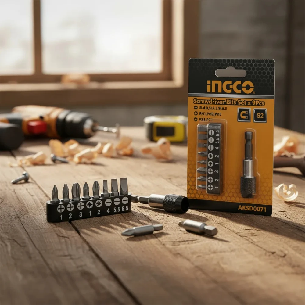 Juego De Puntas Ingco 9 Piezas Acero Cr-V Industrial