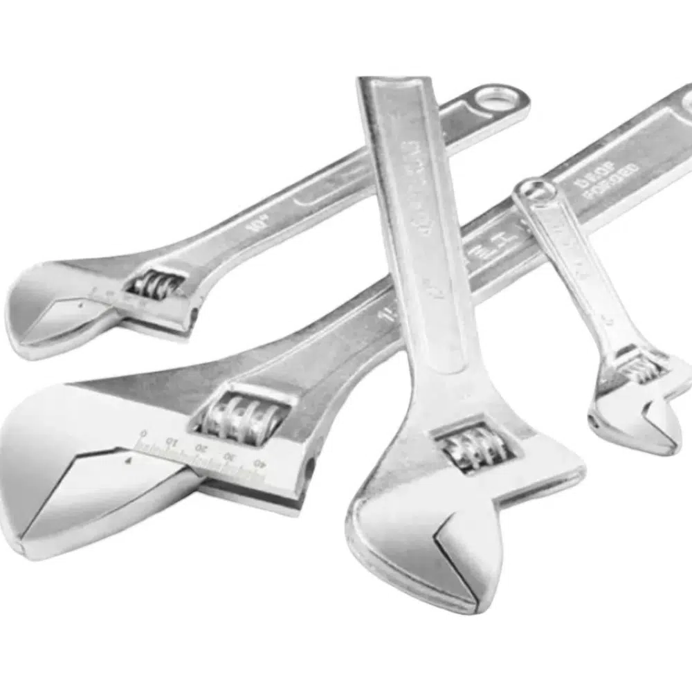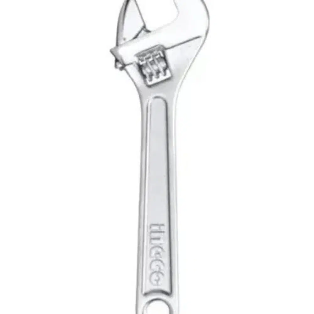 Llave ajustable reforzada con escala milimétrica. Ideal para plomería y mecánica pesada.