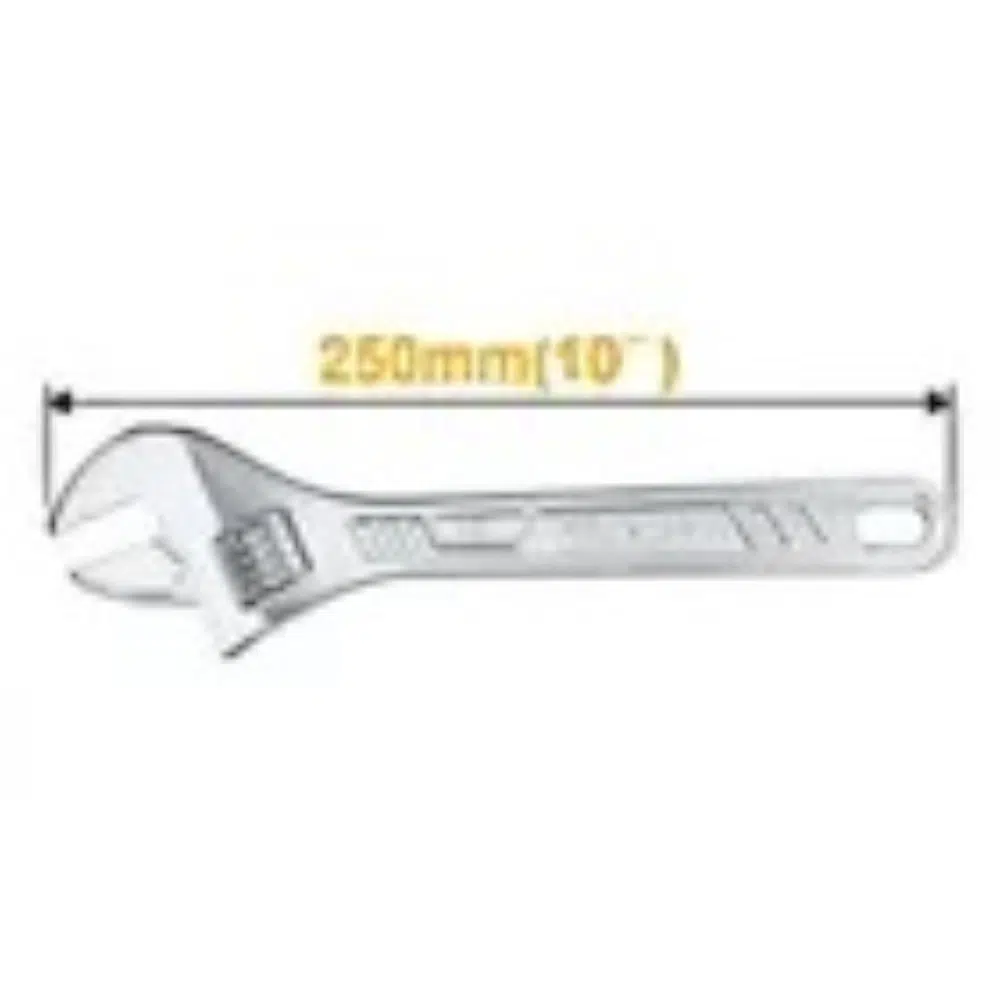 Llave francesa ajustable de 10 pulgadas. Es ideal para trabajos de plomería, mecánica y mantenimiento.